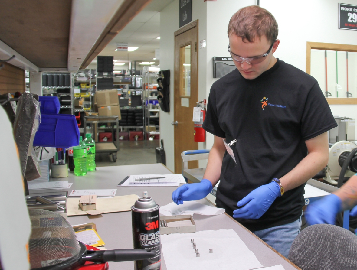 Project SEARCH host businesses provide job internships and an on-site area for interns to meet daily with their instructors to learn team-building and workplace communication skills. The internships available are custodial, maintenance, office administrative support and light assembly.