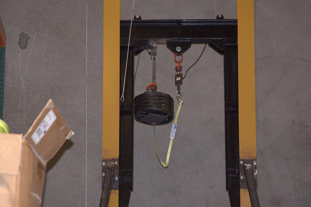 In addition to rigging safety classes and demonstrations, SSWR&R performs hoist inspections. When the hoists come in workers disassemble and rebuild them, taking wear measurements as they work their way through the machine. Before the hoist can be certified, ASME B30.16 standards require a load test to be performed at 125% of its rated load. “Everybody can do that,” Andrew explains. “It’s basically just testing that the motor is going to lift the load and the load is not going to slip. The cool thing about the setup we were able to do with Klaus is that we can also do a slip test.”