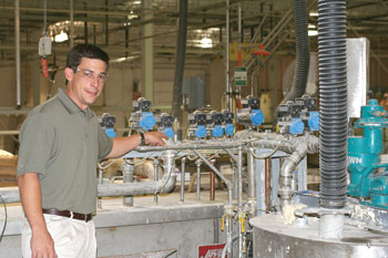 Jim Sansone, maintenance manager, reviewed current production methods of the used equipment transferring to the Aurora factory. He realized that much of the equipment and processes were well over 20 years old and needed an upgrade in technology. Manual raw material weighing systems needed to be automated. The company had limited knowledge in using load cells and wanted to minimize capital spent on the relocation of the equipment. Jim notes, “We had to justify the money.”
