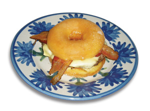 The Big E runs an annual contest in search of the year’s signature fair food. The winner this year was a concoction named the “Craz-E Burger,” created by Martin Brownsey of West Seneca, New York. Craz-E Burger, as served at the Big EZ Café, is a righteous–sized juicy burger with a generous dollop of gooey melted cheese topped with strips of extra-thick bacon on a grilled glazed doughnut. Really. It all comes together though, the glaze and the bacon, the soft sweet bread, the stringy cheese and everything else.