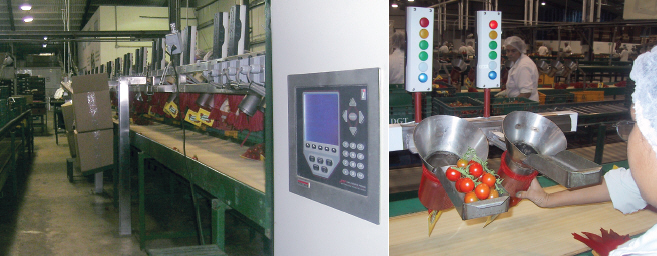 At the end of the day, the packing manager connects to the network using an Excel® file with macros that send commands to all five packing line controllers. All data recorded during the day is downloaded to the packing manager’s computer. The manager then generates reports used to pay bonuses and incentives to operators depending on their individual performance.