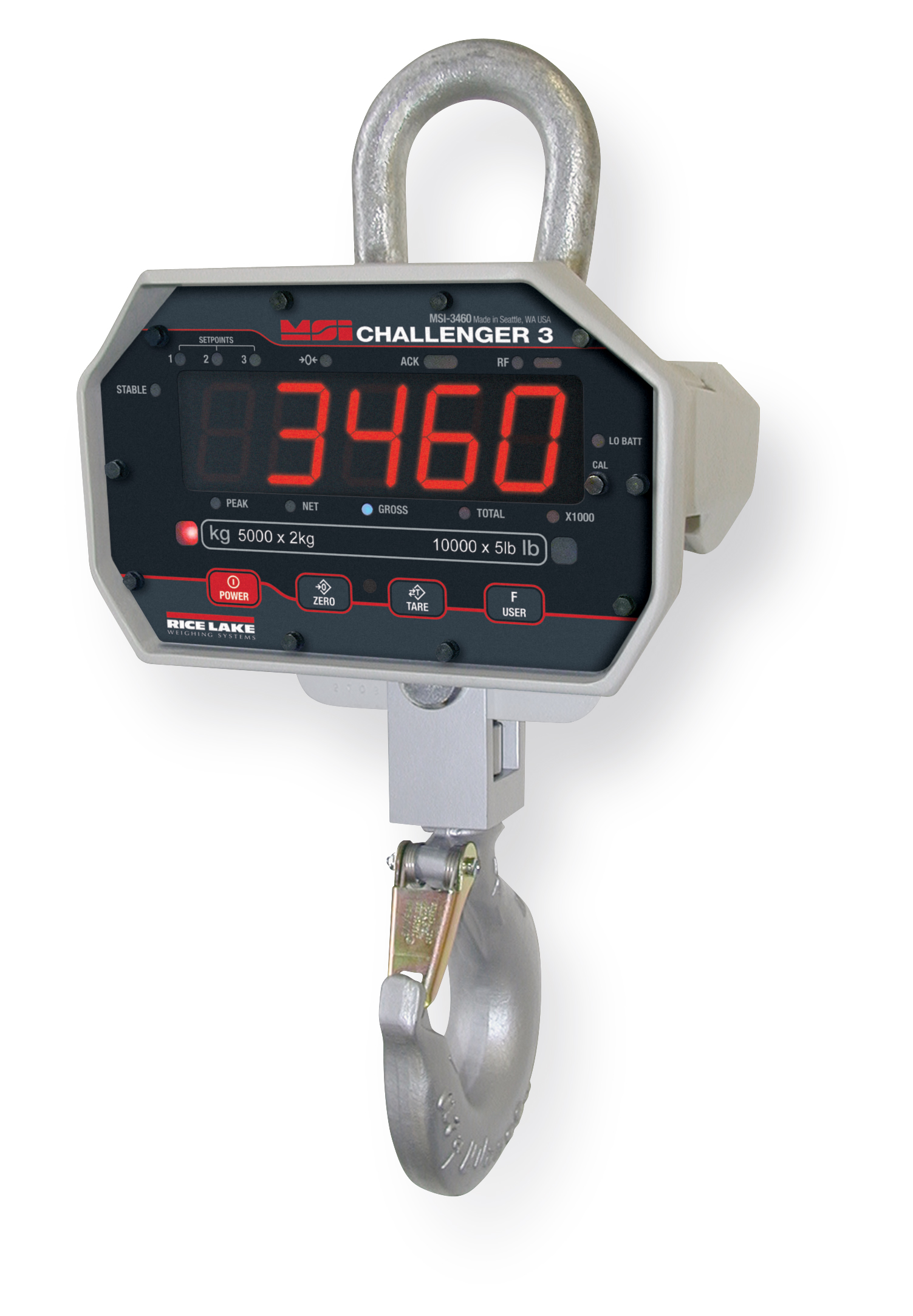This is the most common hoist, which uses a chain hoist or a block with a wire rope or cable. It has a capacity of up to 10 tons and is most commonly found in industrial facilities. Rice Lake recommends the MSI-3460 crane scale.
